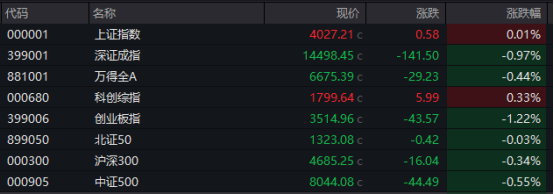 具体来看,沪指早盘震荡上扬,午后回落走低;深证成指、创业板指大幅跳水。截至收盘,沪指微涨0.01%报4027.21点,深证成指跌0.97%,创业板指跌1.22%,科创综指涨0.33%,沪深北三市合计成交约2.43万亿元,较此前一日增加近330亿元。